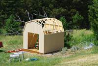 Half the roof is on; it is so hot we cannot stand to be on the roof. The surface of the roof reached 165° and the ambient temperature in the shed was 125°. We will have to insulate the south wall and roof and add some vents. |
